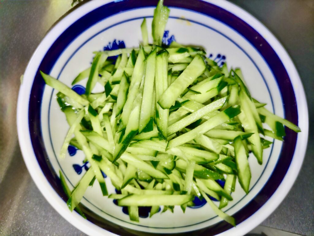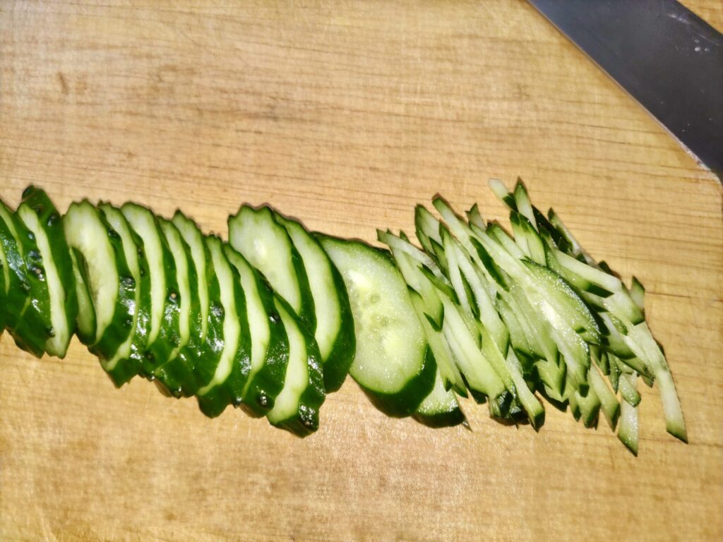 きゅうりの千切りを作って、中華クラゲと和えることにしました。