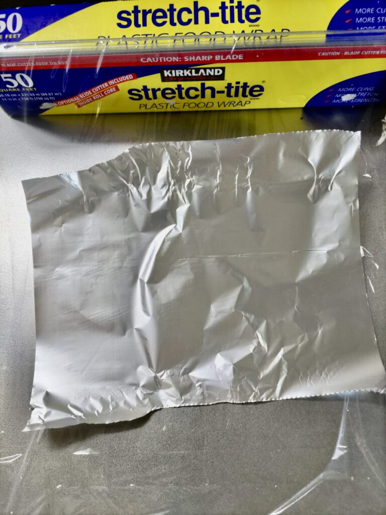 今回は、お試しにラップの上にアルミホイルを敷いて