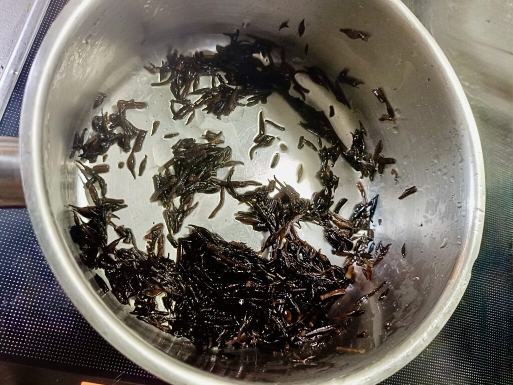 白だしで炒め煮にしたひじきを、